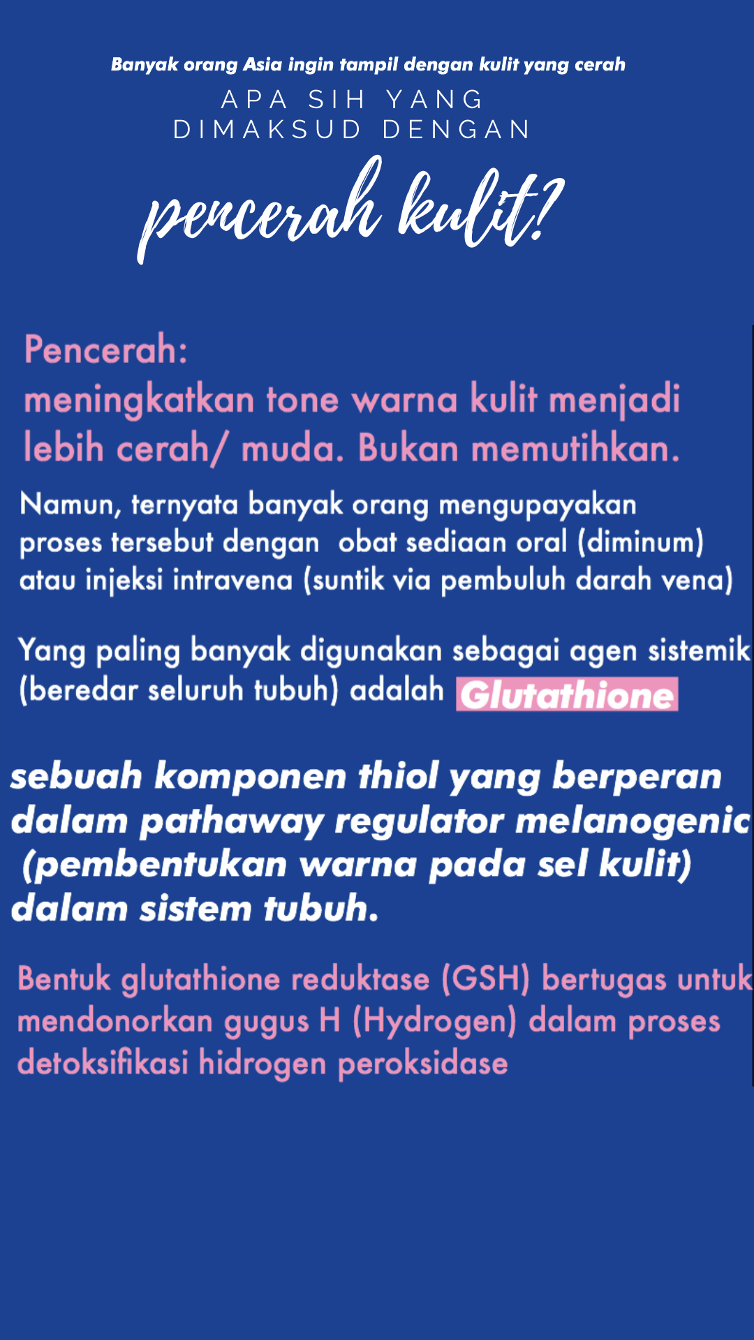 kalau boleh, selanjutnya masukin pembahasan perbedaan efektivitas pemberian glutathion topikal, oral & peroral dong mba ;D