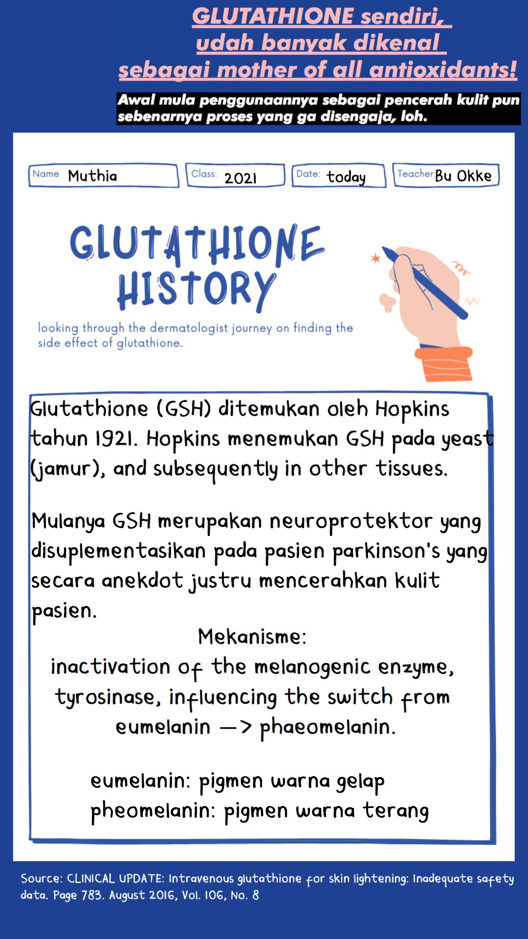 Firra on May 30, 2020 at 04:38 Reply Halo mba Muthia. Kontennya menarik banget! kalau boleh, selanjutnya masukin pembahasan perbedaan efektivitas pemberian glutathion topikal, oral & peroral dong mba ;D